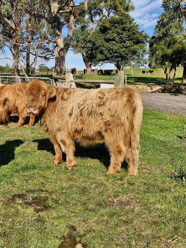 All our Mini Highland Calves are born, raised and live in our farm as part of the family. Our calves have access to all the 40 acre big securely fenced farm all day and we have people who watches over them and care for them 24/7.